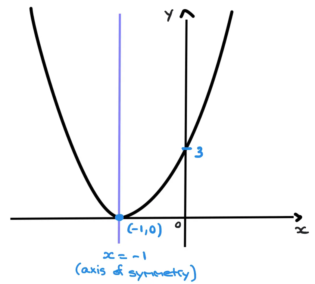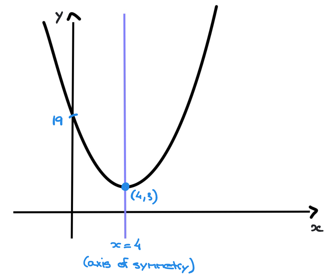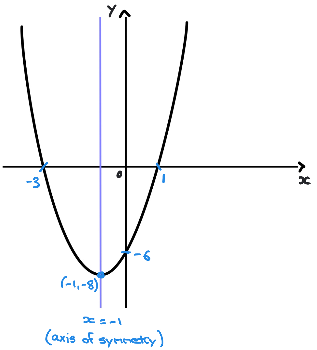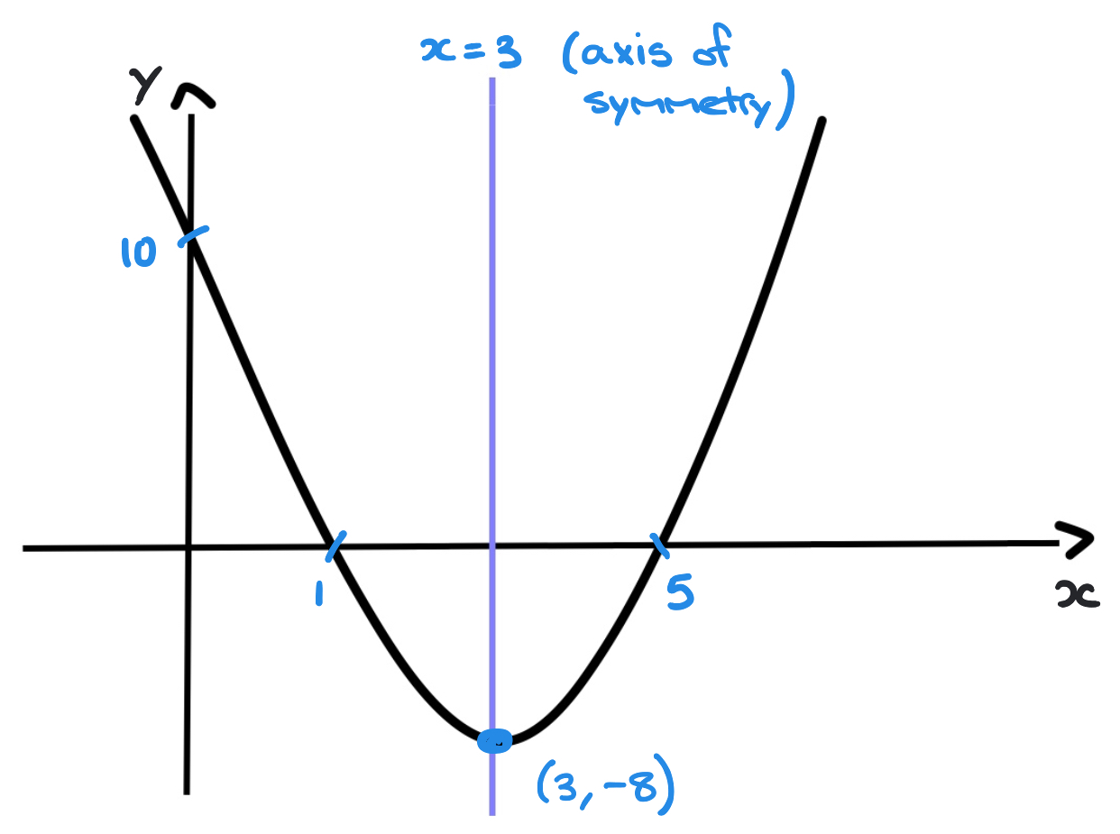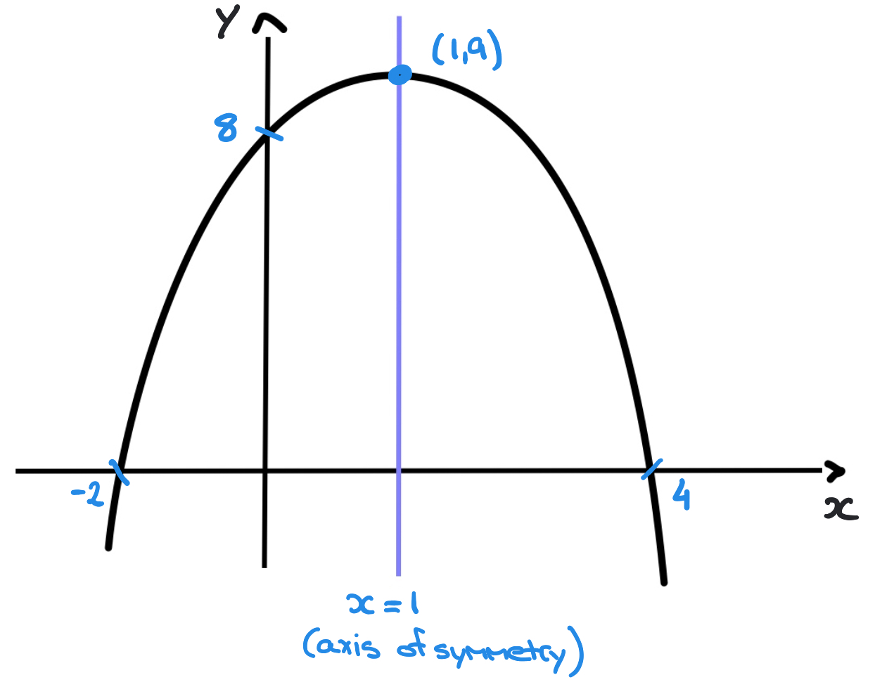 Sketch the parabola, labelling and "key points" and drawing the axis of symmetry.