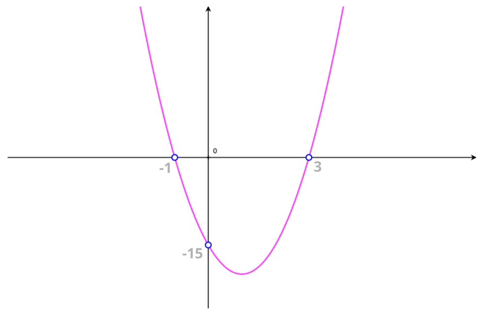 If a parabola cuts the \(x\)-axis in two points: \[\begin{pmatrix}p,0\end{pmatrix} \quad \text{and} \quad \begin{pmatrix}q,0\end{pmatrix}\] then the parabola's equation, \(y=ax^2+bx+c\), can be written: \[y = a\begin{pmatrix}x - p \end{pmatrix}\begin{pmatrix}x - q \end{pmatrix}\] where \(p\) and \(q\) are the \(x\)-coordinates of the points at which the parabola cuts the \(x\)-axis (the \(x\)-intercepts).