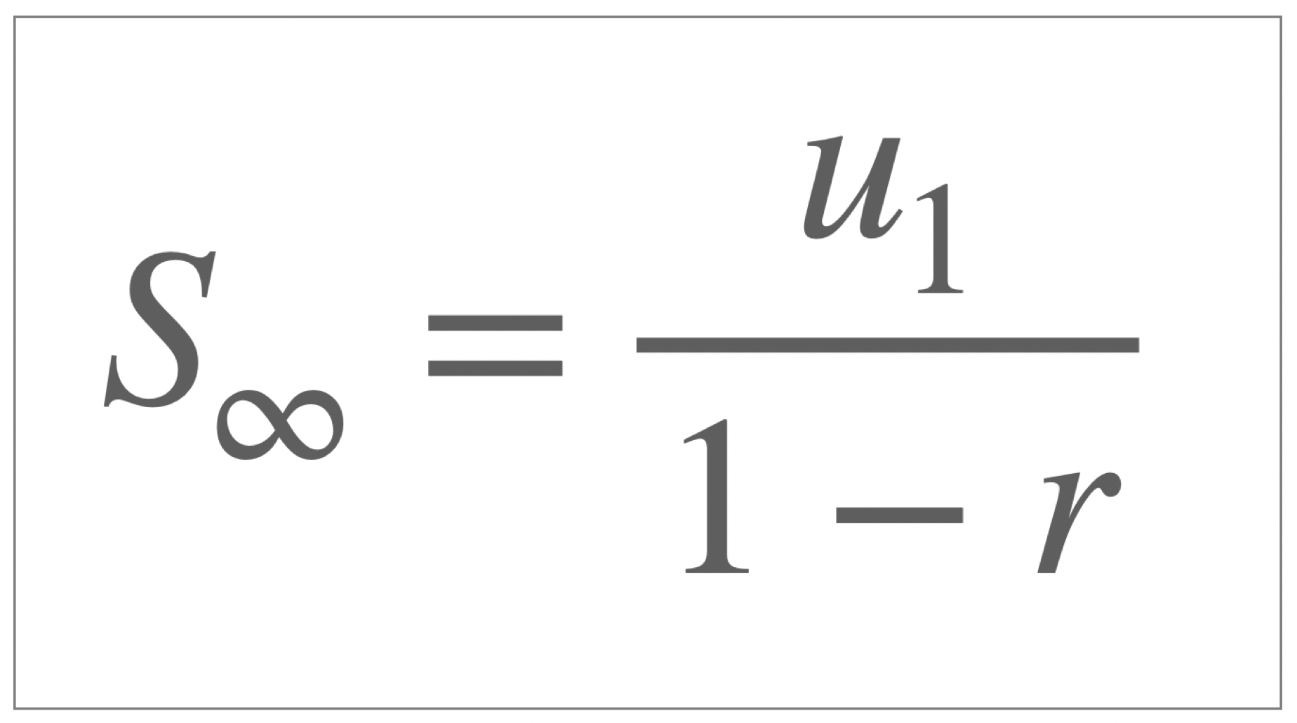 Given a geometric sequence, if its common ratio is between -1 and 1: \[-1 < r < 1\] which we could also write: \[ \begin{vmatrix}r \end{vmatrix} < 1 \] then its corresponding geometric series converges (gets closer and closer) towards the "ininite sum" \(S_{\infty}\).