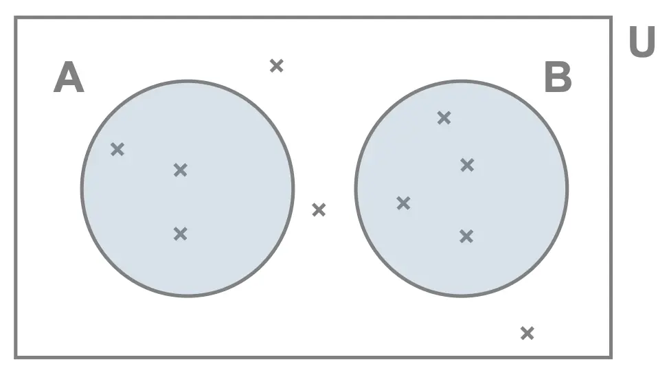 When represented on a Venn diagram, as we can see here, the sets representing mutually exclusive events do not overlap (they do not intersect).