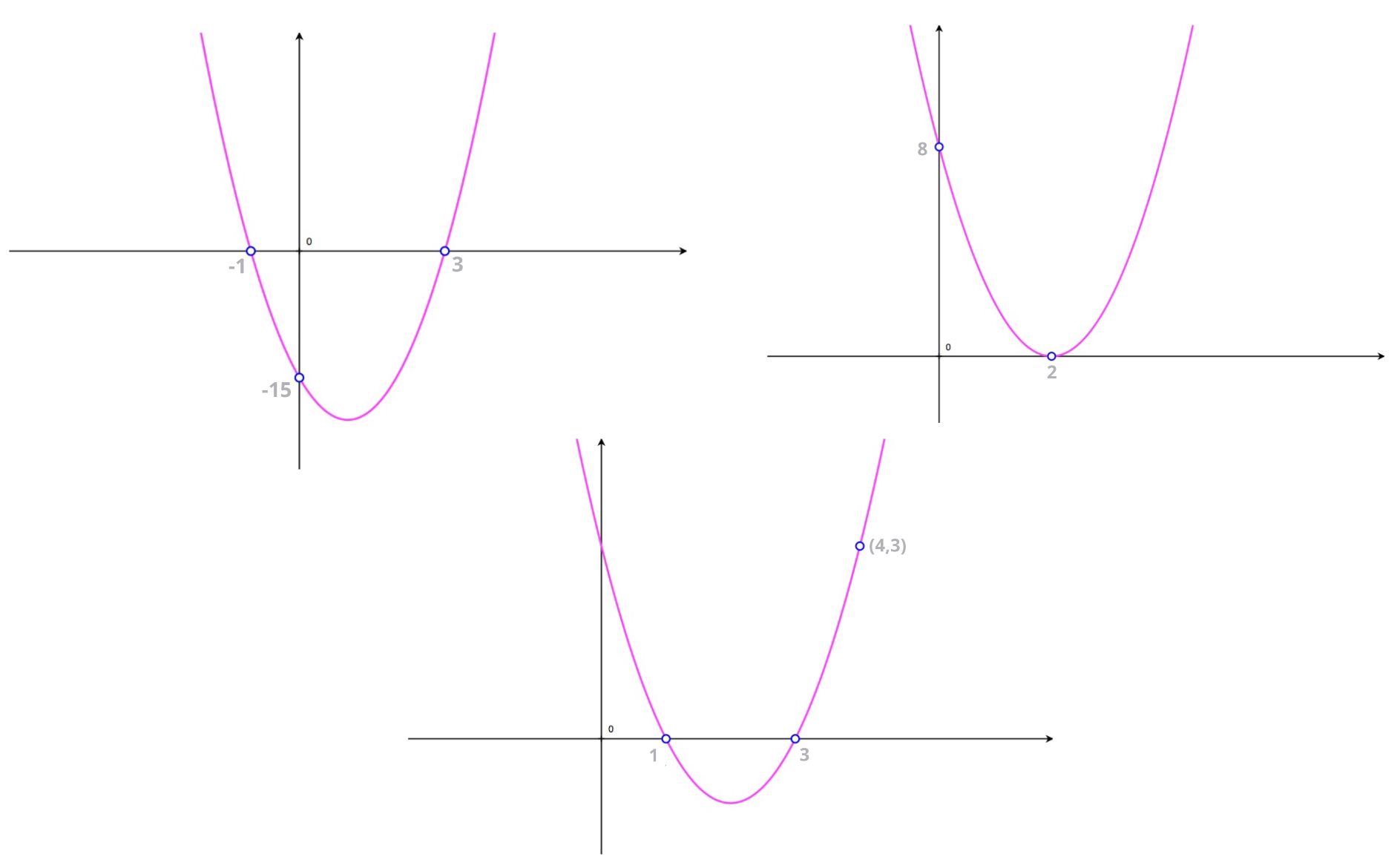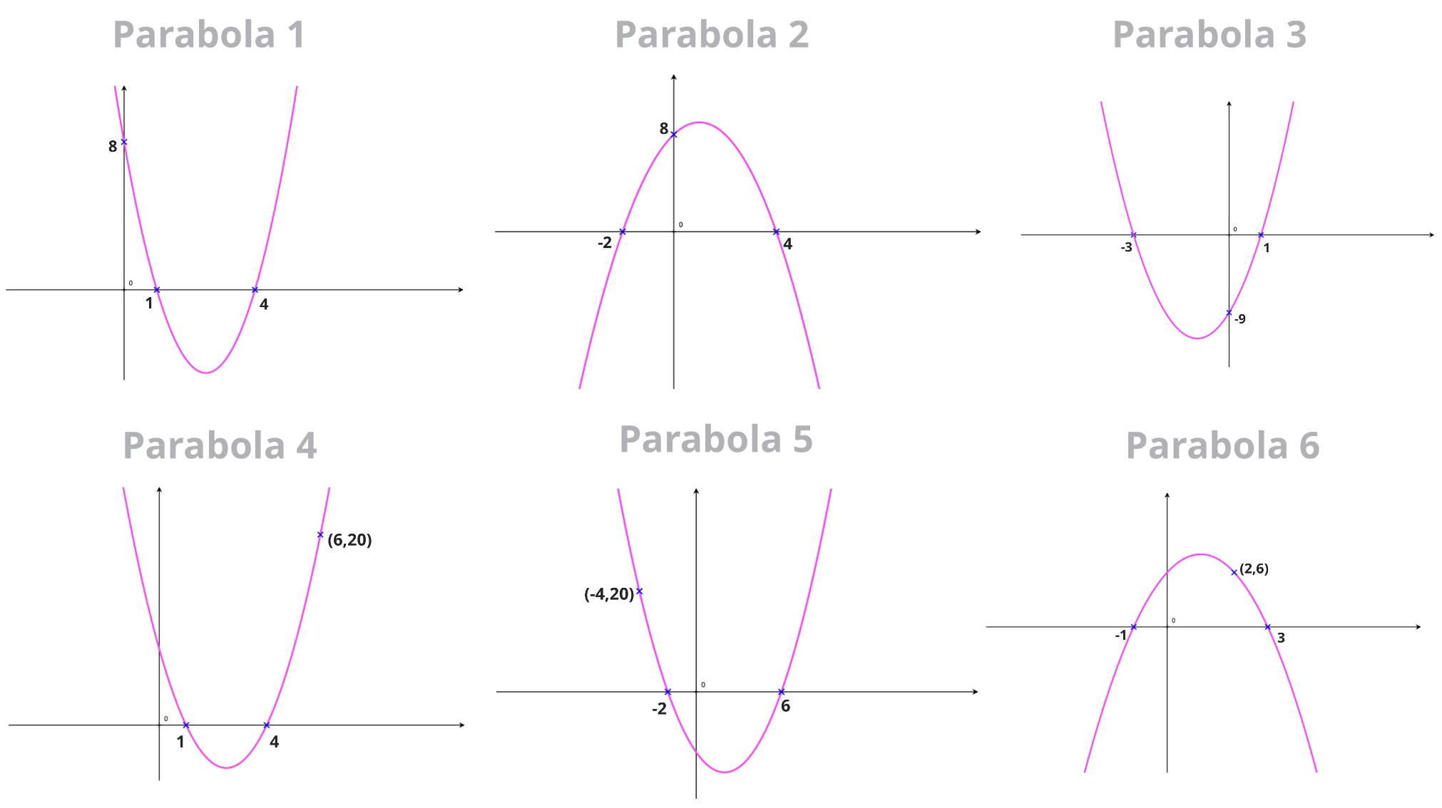 By the end of this section we'll know how to find the equation of any of the parabola shown here: