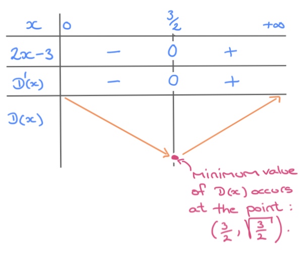 Find the shortest distance from the point \(\begin{pmatrix}2,0\end{pmatrix}\) to the curve \(y=\sqrt{x}\).