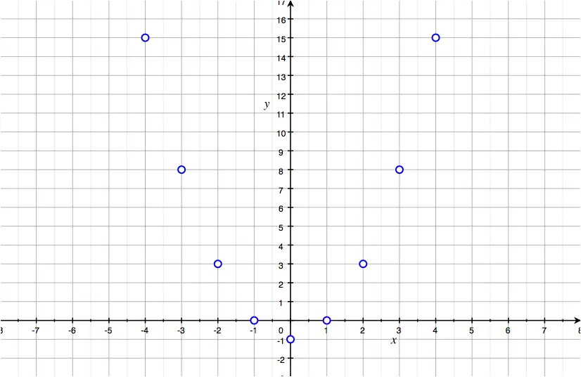 The calculator makes its own table of values (much larger than the ones we did above) and plots enough points for it to appear as a smooth curve on the screen.