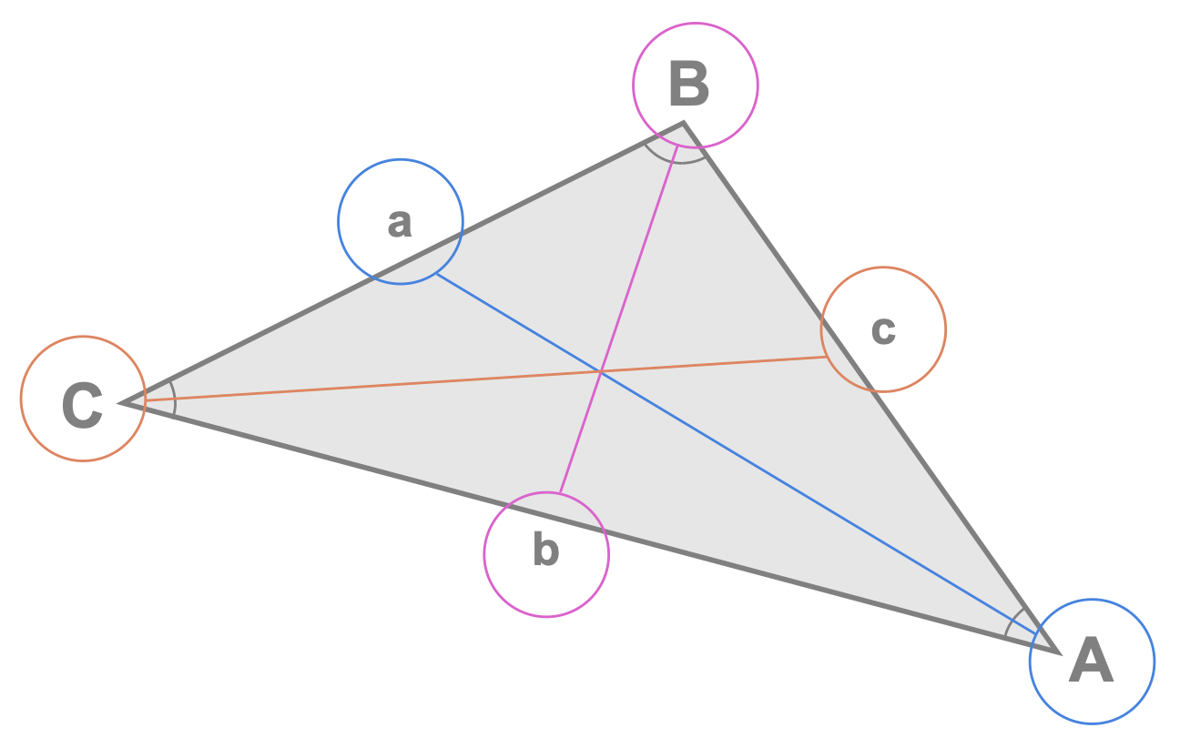 Since the sine rule involves side lengths and their opposite angles, it can be useful to connect each pair as shown here: