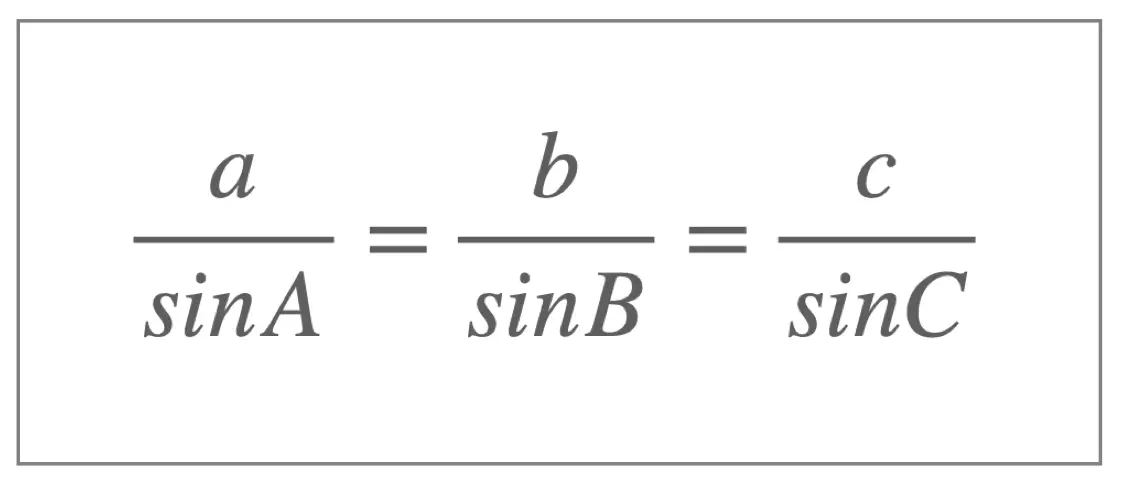Given a triangle the ratio of each side divided by the sine of its opposite angle is the same throughout the triangle. This fact leads to the sine rule, which (when looking for an unknown side length) can be written: